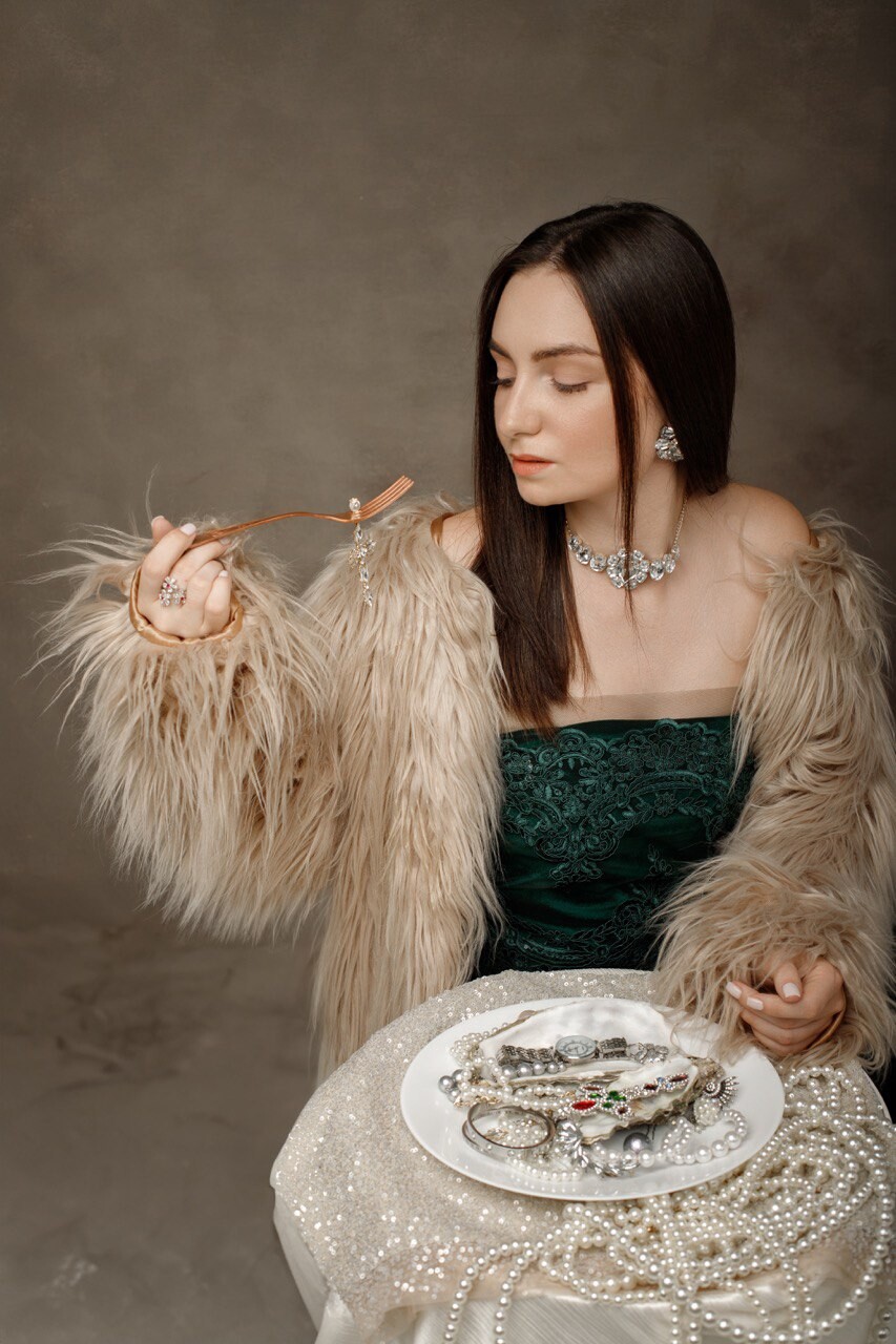 Фотопроект о роскоши, страсти и игре: съемка «Dolce vita» для глянцевого журнала MomsHistory, где изобилие украшений и бриллиантов становится главным сюжетом.
